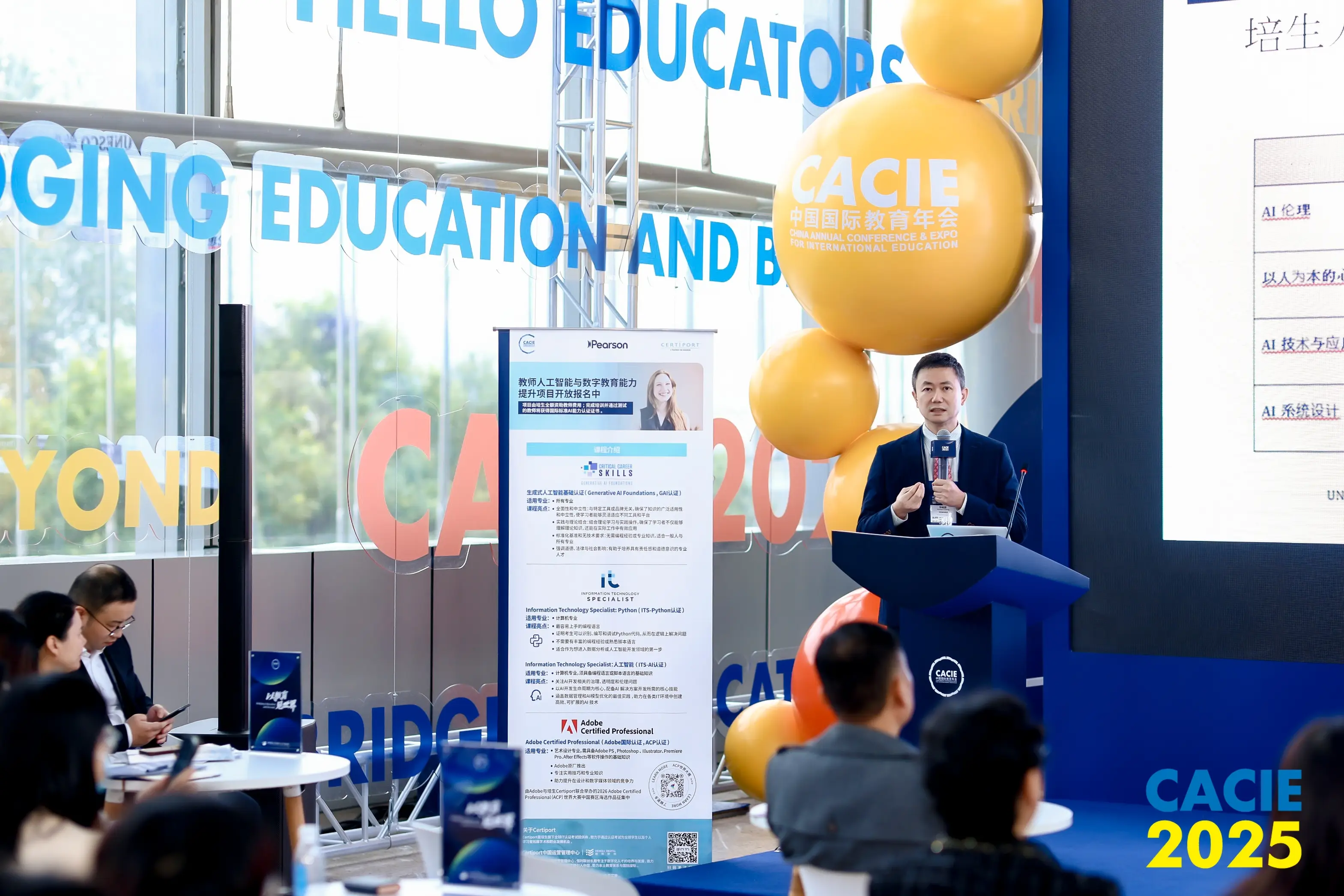 在CACIE Talk环节,培生发布了其与中国教育国际交流协会合作推出的“教师人工智能与数字教育能力提升计划”。作为世界数字教育联盟创始成员,培生积极推动数字教育资源的全球交流与教师能力建设。依托旗下IT认证业务Certiport的认证与服务,该项目将引入国际标准的优质人工智能培训资源和体系,助力提升教师的人工智能应用水平和数字化教学实践能力。
